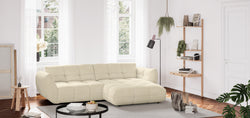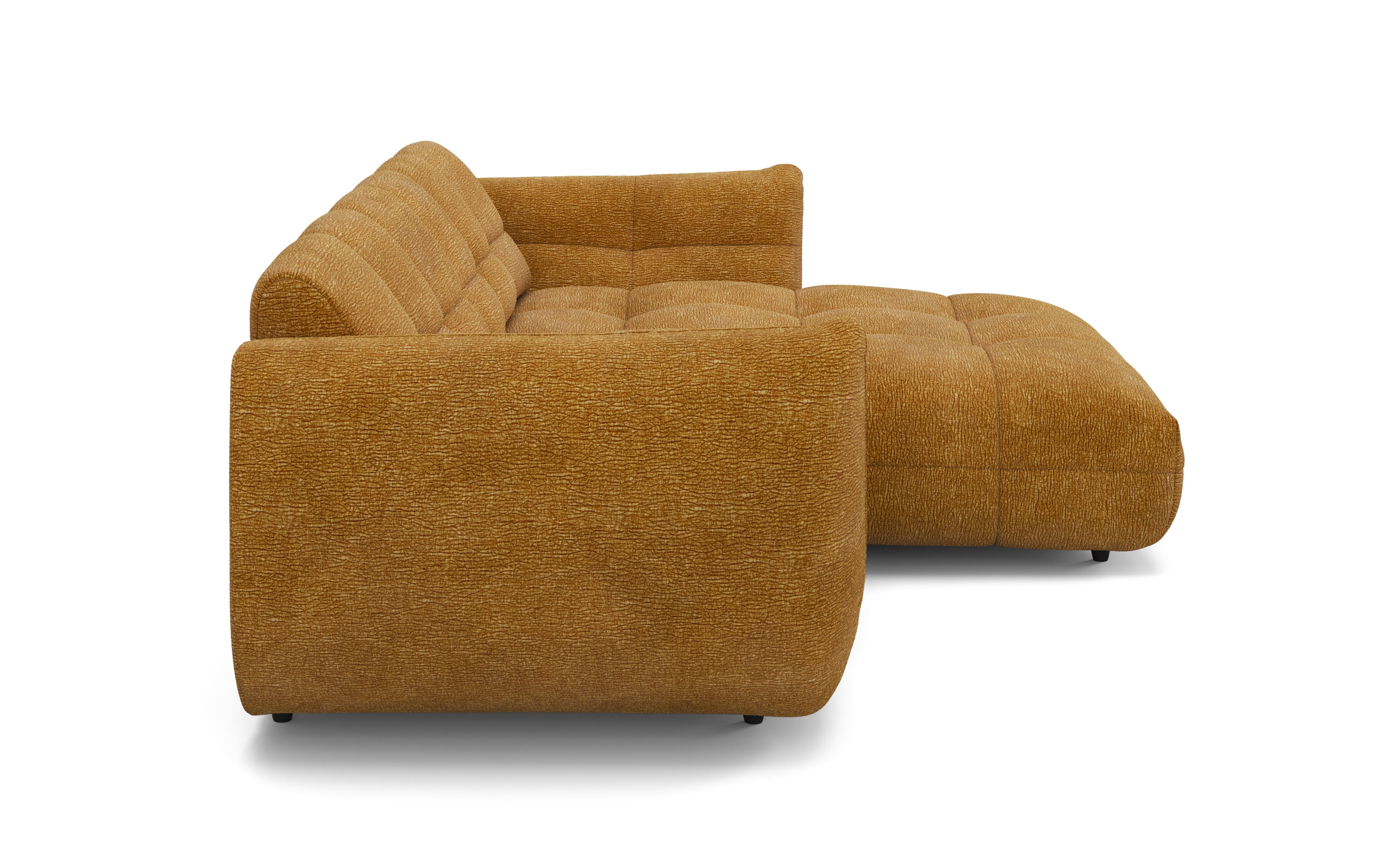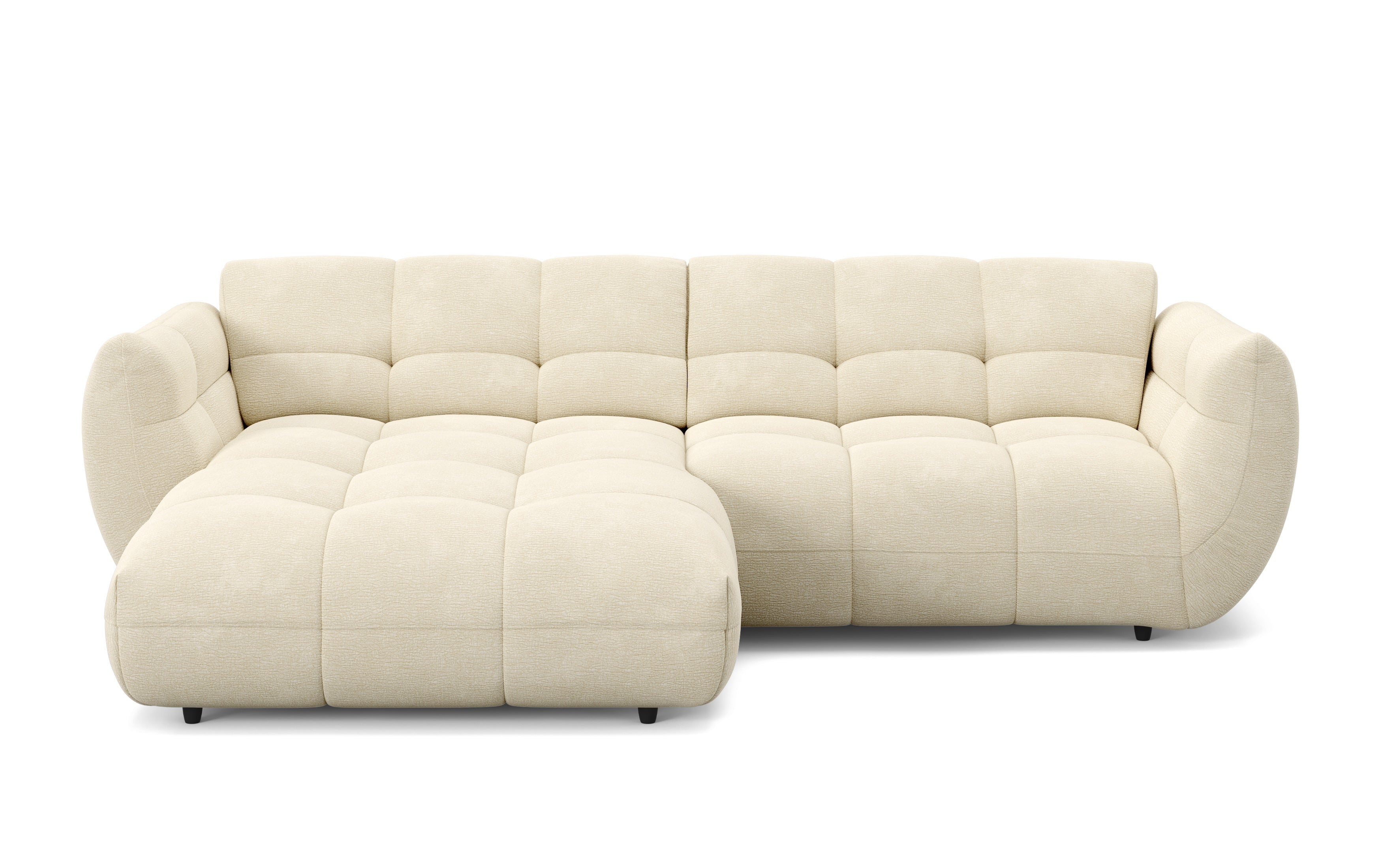 Sitzen auf dem Modell Aalborg fühlt sich direkt richtig an. Die Polsterung ist fest genug, um dem Körper Halt zu geben, bietet aber genügend Nachgiebigkeit für lange Abende. Du versinkst nicht so tief, dass das Aufstehen schwerfällt, sondern genießt eine Unterstützung, die den Rücken schont. Die Sitztiefe ist so bemessen, dass man sowohl aufrecht sitzen als auch entspannt liegen kann. Durch die quadratische Steppung der Sitzfläche bleibt die Spannung des Stoffes gleichmäßig verteilt. Das sorgt für ein ruhiges Sitzgefühl auf der gesamten Fläche, egal wo du dich gerade niederlässt.