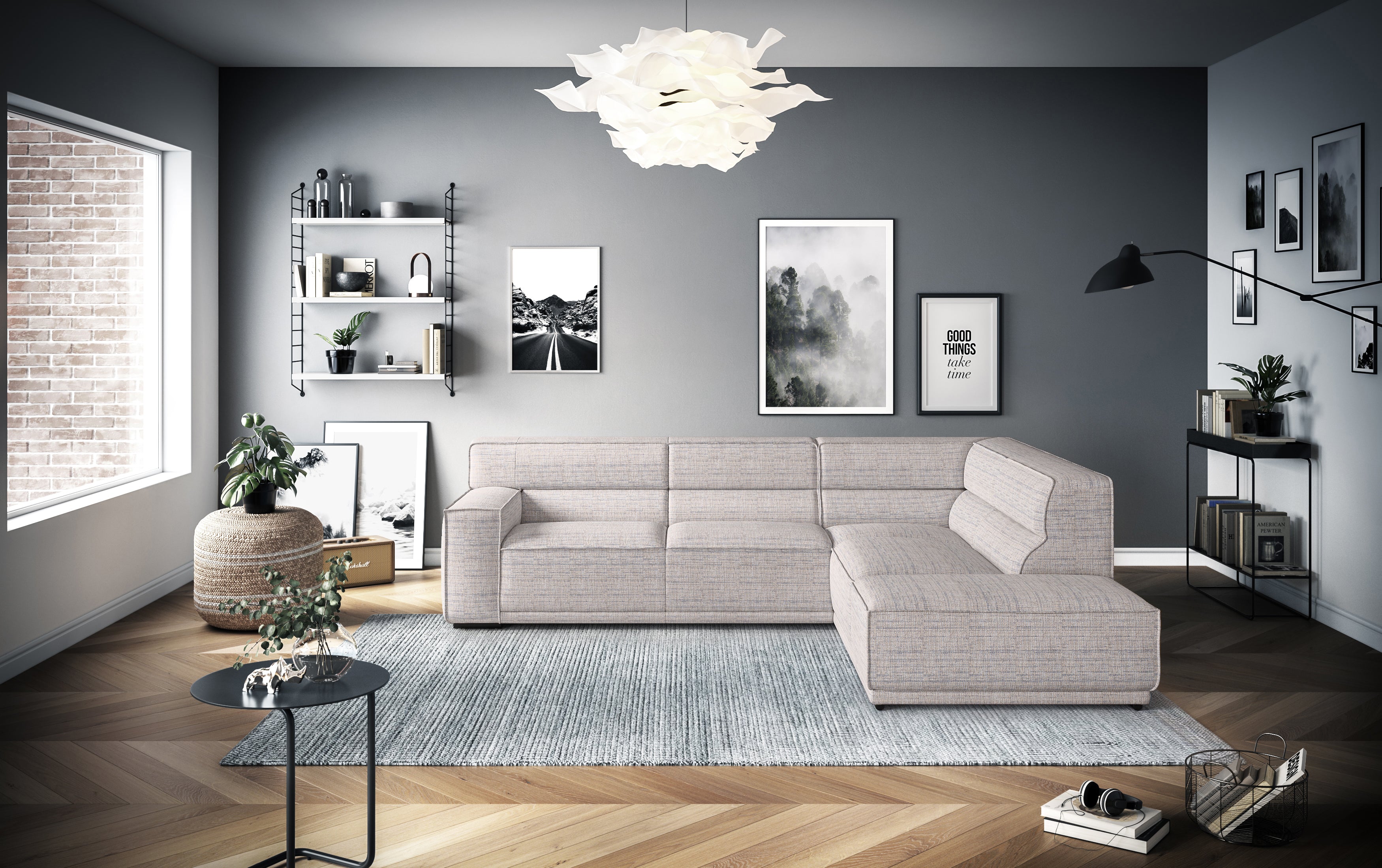 Bei der Entwicklung von Umea stand die Langlebigkeit im Fokus. Das Modell setzt auf eine klare Linienführung und wohlproportionierte Elemente, die dem Ganzen einen architektonischen Rahmen geben. Die Verarbeitung zeigt sich in den präzisen Nähten und der straffen Polsterung, die über die gesamte Fläche hinweg gleichmäßig bleibt. Hier verzieht sich nichts, und es gibt keine weichen Stellen, die mit der Zeit nachgeben. Der Rahmen bildet ein robustes Grundgerüst, das darauf ausgelegt ist, viele Umzüge und wechselnde Lebenssituationen unbeschadet zu überstehen. Die gesamte Bauweise ist auf Widerstandsfähigkeit getrimmt, damit die klare Optik über lange Zeit erhalten bleibt.
