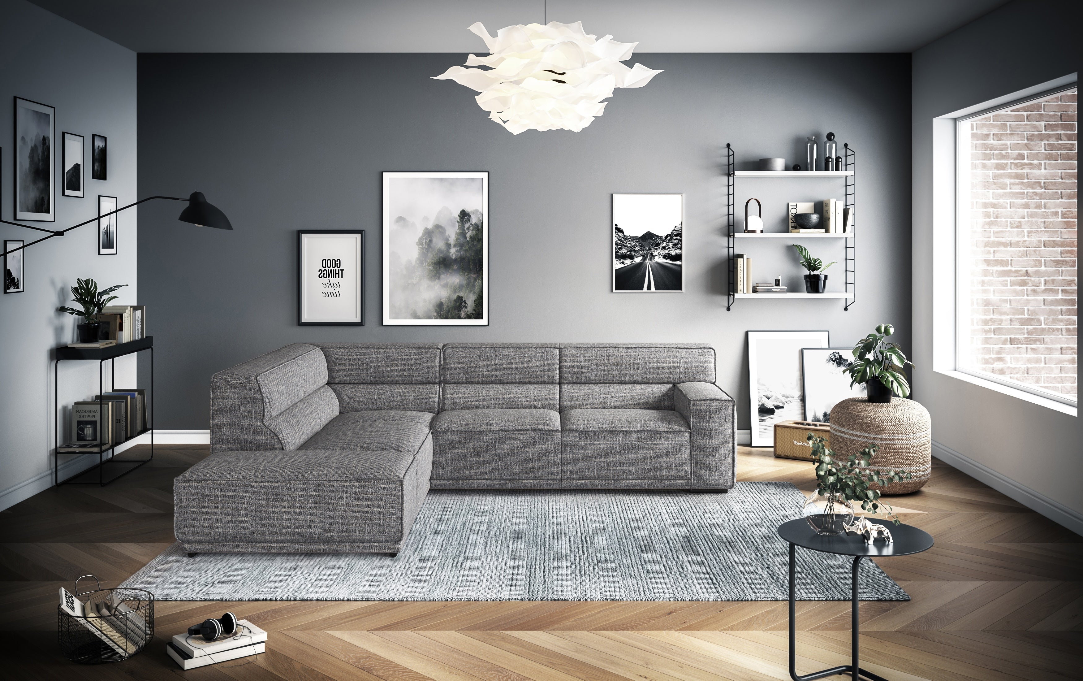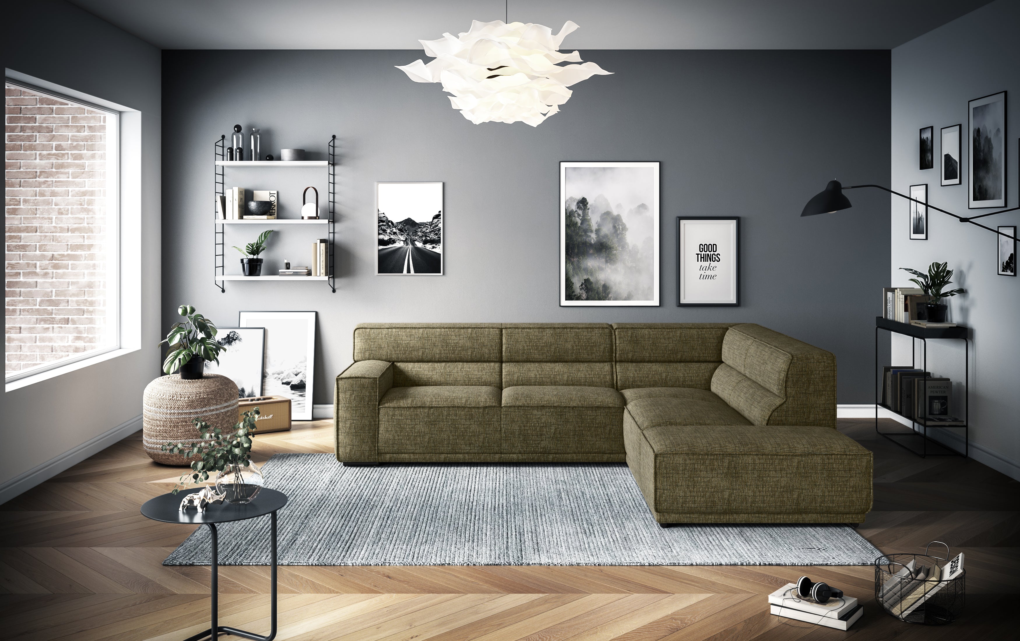 Umea ist die Antwort auf einen Alltag, der nach Flexibilität und Bodenständigkeit verlangt. Dieses Modell drängt sich nicht in den Vordergrund, sondern bildet das stabile Fundament für alles, was in deinem Wohnzimmer passiert. Es ist für Leute gedacht, die ein Sofa suchen, das alles mitmacht – vom schnellen Kaffee am Morgen bis zum langen Abend mit Freunden. Die Formsprache ist klar und verzichtet auf unnötige Spielereien. Durch die bodentiefe Bauweise und die großzügigen, kubischen Flächen wirkt das Design ruhig und massiv, ohne schwerfällig zu sein. Es ist ein Möbelstück, das sich deinem Leben anpasst und nicht umgekehrt.